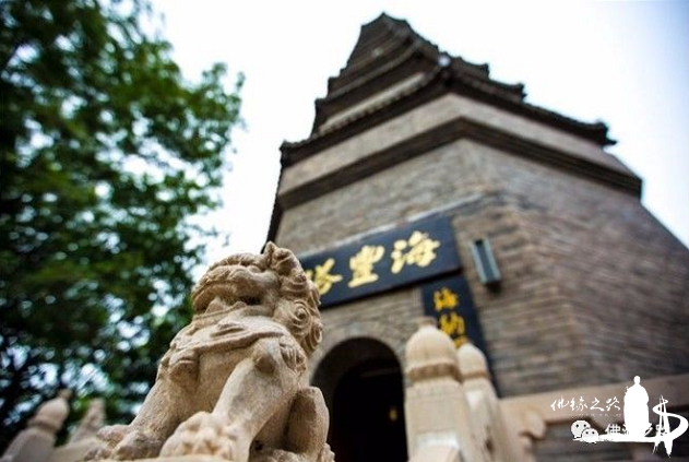 大觉寺“海丰塔”,原名“普照寺舍利塔”。史载:唐太宗尚浮屠,彼时佛国进舍利几十粒,颁海内大郡,建塔贮之。海丰塔自唐代创建,历五代、宋元兴废,明清相继重建、修葺,塔旁殿宇宏丽,松柏翠映,碑石林立,文风盎然。