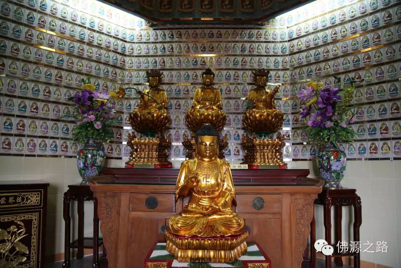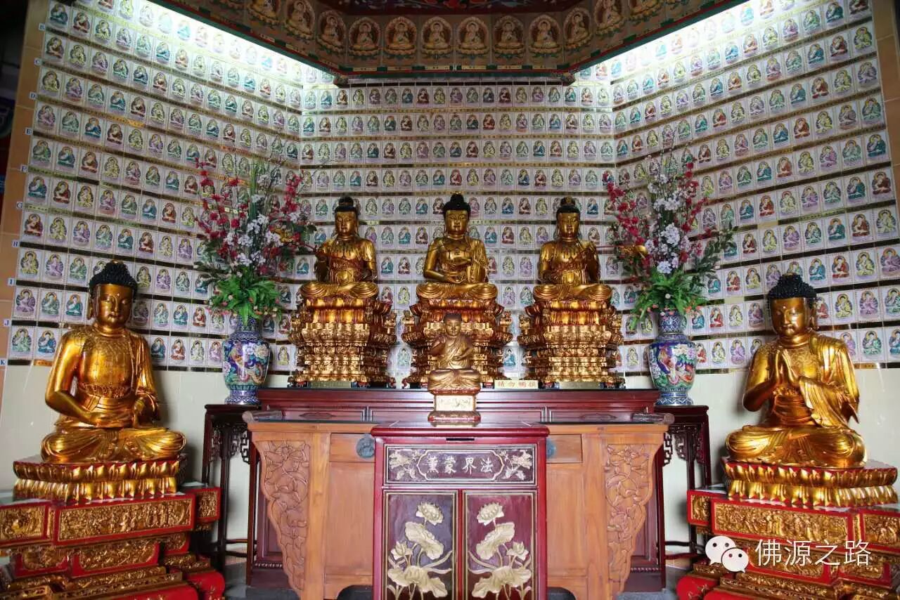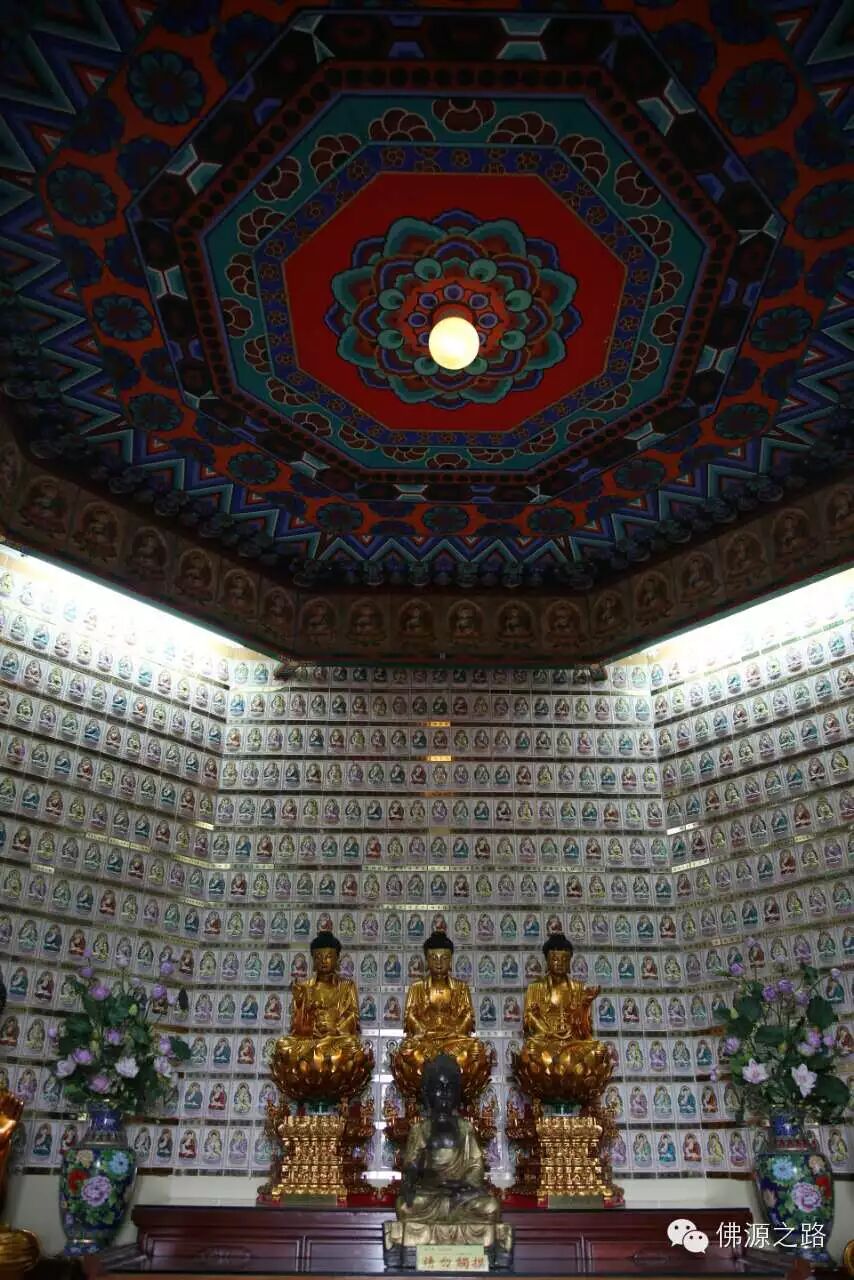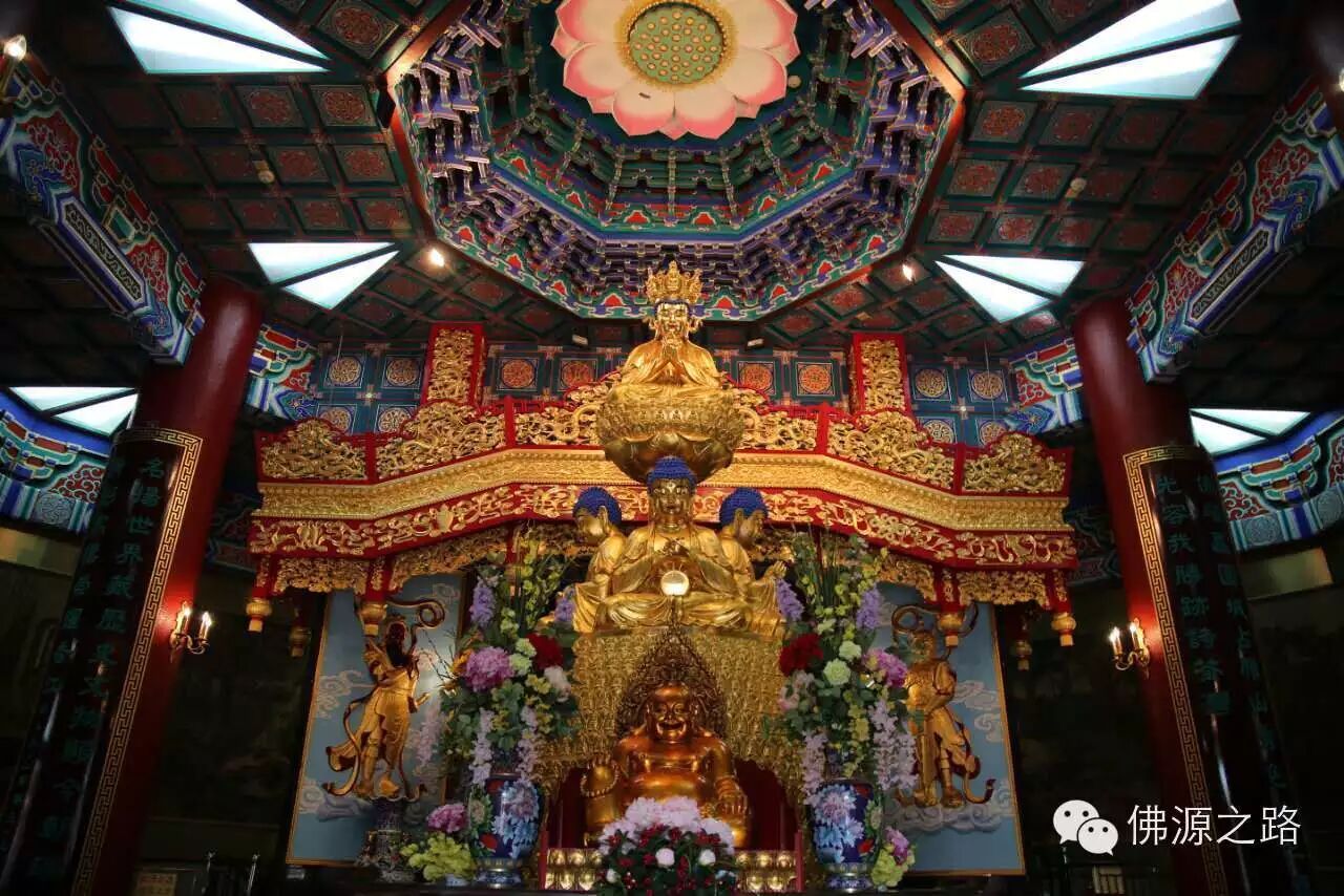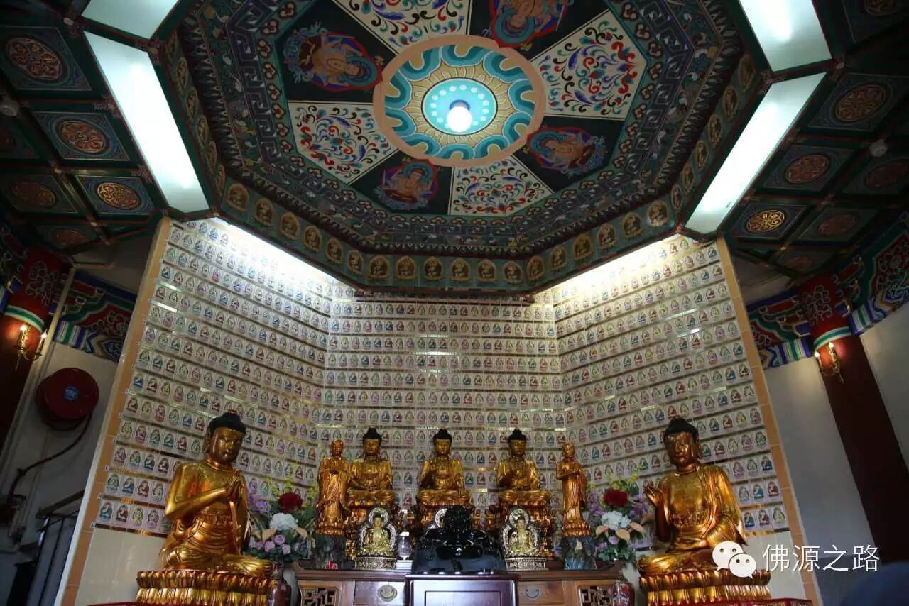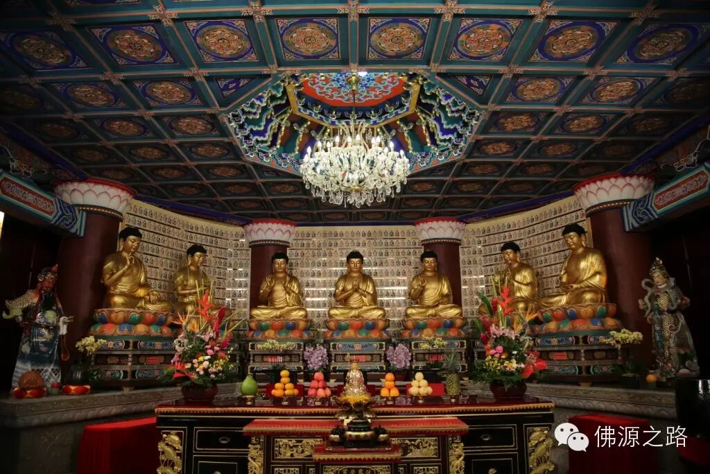 法堂底层为玉佛殿:中央供奉释迦牟尼玉佛,四周围绕十八罗汉,后面供奉七如来。