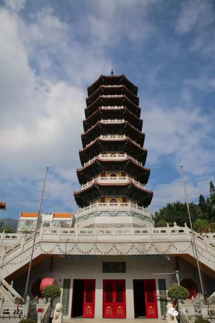 万佛宝塔矗立于大帽山麓,巍峨雄伟、金碧辉煌,宝塔四周描绘佛教故事、天花藻井等,以唐、宋艺术风格为依据,壁画以淡雅柔和取胜,佛塔建有两层基座,塔身高九层,每层供奉佛像或菩萨像为主体。
