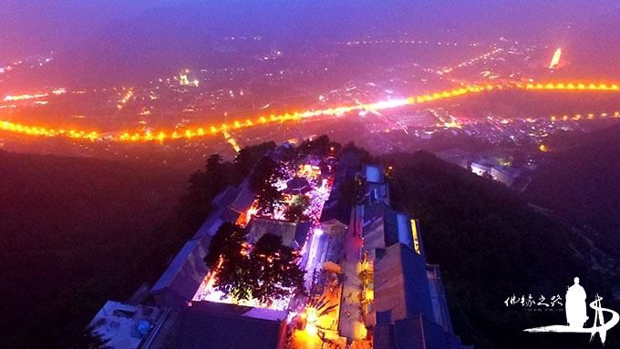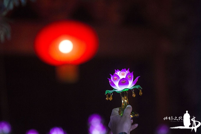 伴随着低沉的鼓声,参加传灯大典的信众,点亮手中的莲灯,黛螺顶上呈现出一种兴奋中的虔诚和幸福。