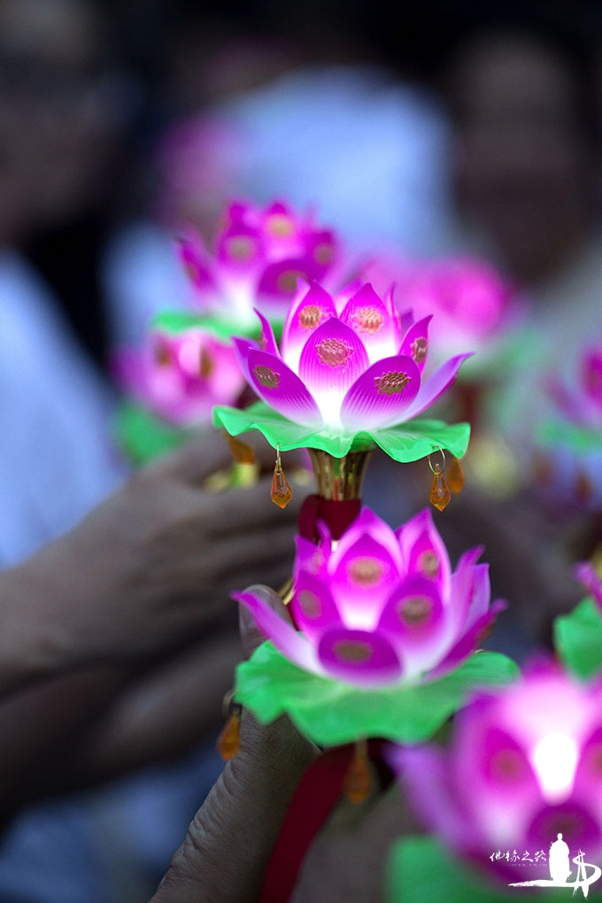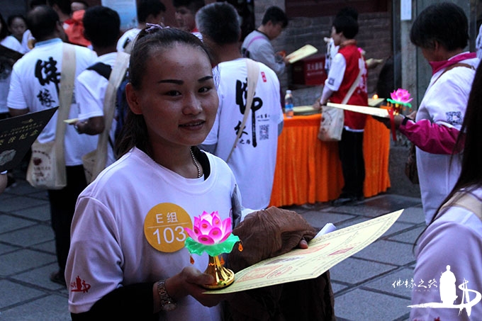 随后,1080名传灯者按组别手持莲灯排队向黛螺顶进发。