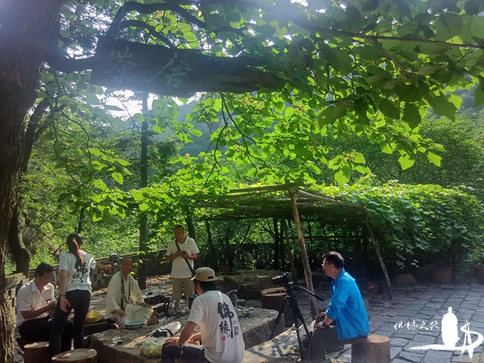 23日下午,“佛缘之路”小分队来到千山龙泉寺。一进寺门,大家不是关注与自然景物彼此烘托、融为一体的古老寺庙,而是被一个露天茶舍所吸引。