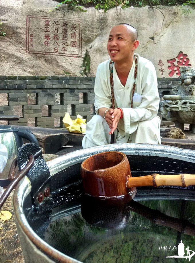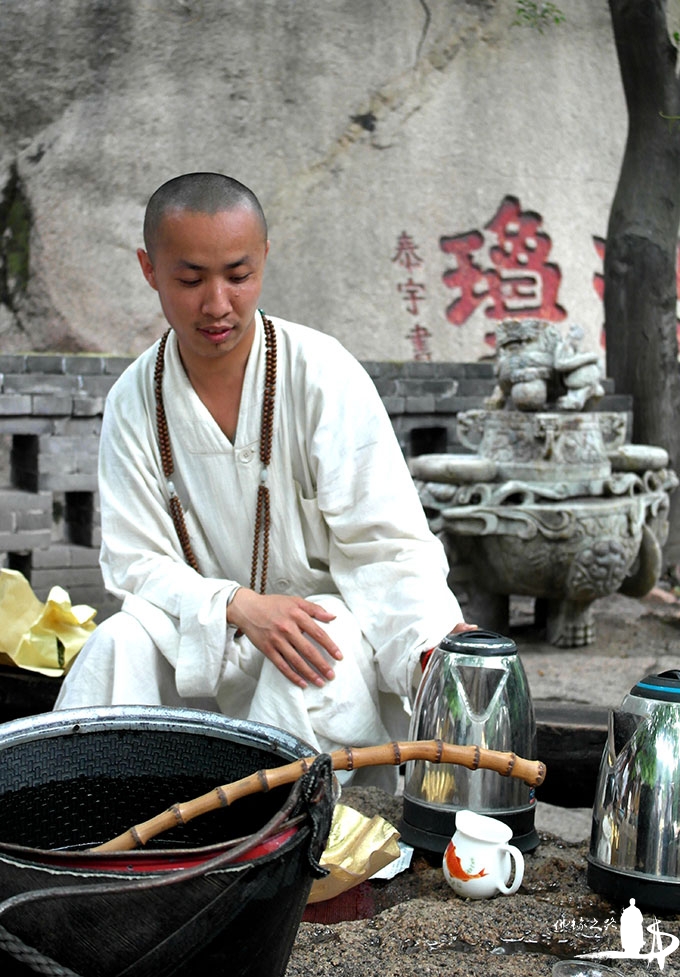 照见师父是一位帅哥,谈吐自然,能将深奥的禅理用小故事讲出来。他说,他每天坐在这里烧水泡茶,给经过的游人香客免费饮用,既解决了很多人的饥渴之苦,又无形中拉近了佛教与信众之间的关系,解决一些信众生活中遇到的困惑。