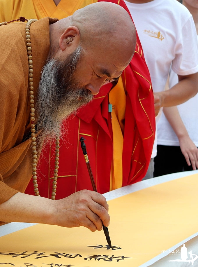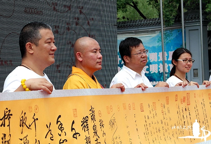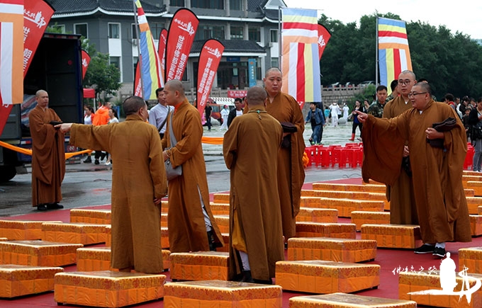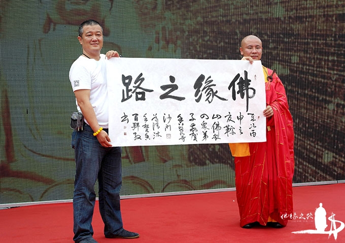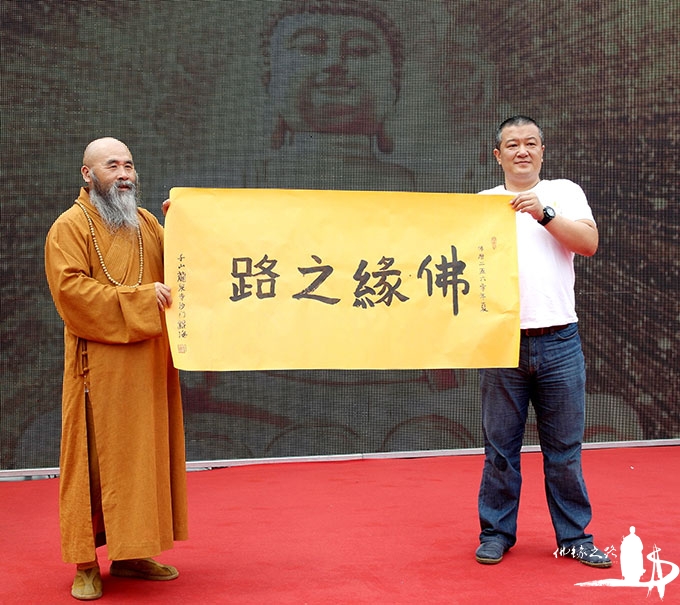 法会后,到会各寺住持上台,在“佛缘之路”卷轴上加盖三宝印,法会圆满结束。