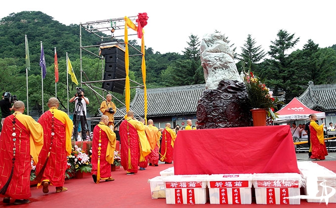 王博勤会长致辞后,以鞍山市佛教协会副会长、千山龙泉寺方丈亲海大和尚为首的108位大德法师共同主法,祈福“‘佛缘之路•我心有爱’朝圣祈福万里行”走进千山,祈福祖国昌盛、鞍山人民生活幸福,祈福万名中考学子菩萨恩泽、开智增慧、发挥出色、所求如愿、考入理想学府。