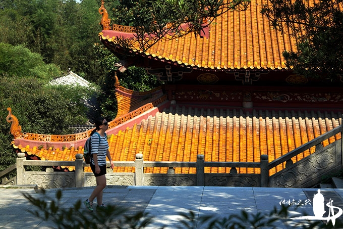 说实话,这几天长沙降温,天不算热,但一路上坡,提着重重的琉璃佛,也不是容易事。汗透体恤、气喘吁吁地走了两个多小时,终于看到了寺院的琉璃瓦屋顶。