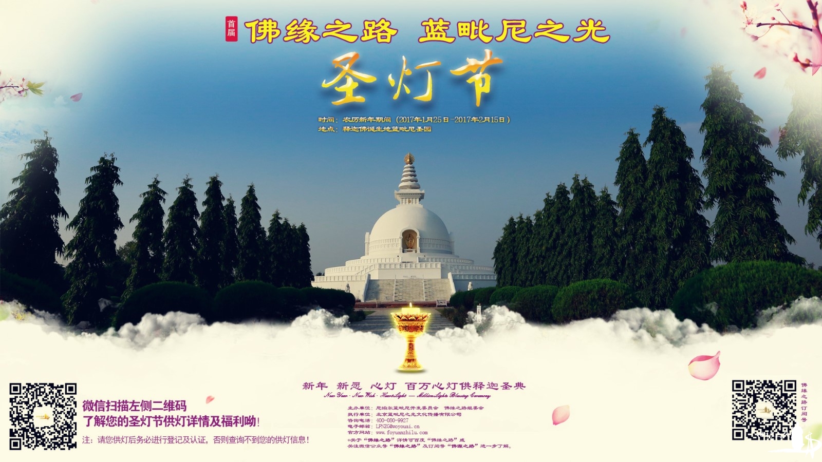 “中尼圣灯节”将于2017年春节在佛都举行,您只需要网上报名,就能为父母供一盏药师健康灯,祈求父母健康长寿,欢喜自在。